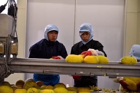 2人はJAの野菜加工施設で1日職場体験をおこない、南瓜の加工をやっていました。