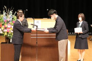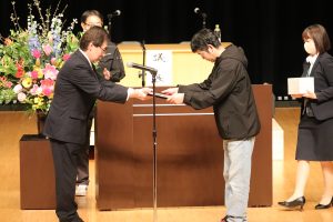 名前を呼ばれた方が舞台へ登壇し、関口組合長より表彰式と記念品を贈呈されました。