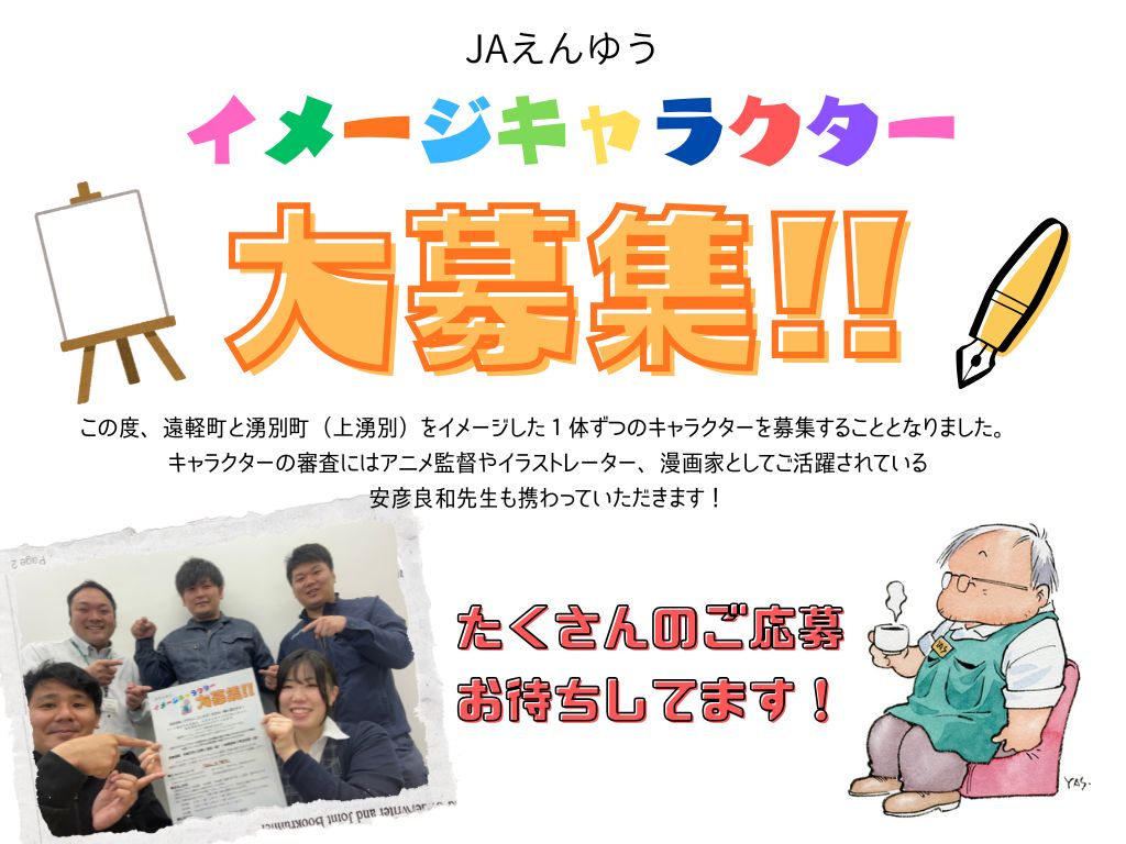 この度、JAえんゆうイメージキャラクターを募集することとなりました。